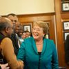 The CHR was invited to a conversation with President Michelle Bachelet of Chile on the challenges of reckoning with oppressive pasts. Hosted by the Nelson Mandela Foundation, and chaired by Prof Njabulo Ndebele, the conversation, which proved to be an intense dialogical exploration of the theme, took place at the Mandela Rhodes Foundation in Cape Town on 9 August 2014. President Bachelet also delivered the 12th Nelson Mandela Annual Lecture on the same day, and viewed the CHR exhibition, ‘Interruptions: Posters from the Community Arts Project Archive’ at the Cape Town City Hall.