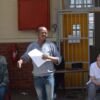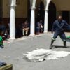 The day ended in the courtyard with a performance presented by playwright and theatre director Itumeleng Wa-Lehulere and starring Tony Miyambo and Thembani Luzipho. Professor Jane Taylor introduced the play as an exploration of migrancy, capital, tradition, and labour in South Africa through its imagining of the back story of “The man in the Green blanket,” Mgcineni Noki: the miner who was killed during the Marikana massacre. Wa-Lehulere was assisted in writing and directing by Miyambo, who is an actor, writer, director, and producer working across performance and television. Luzipho is a television, film, and theatre actor with experience in local and international productions.
