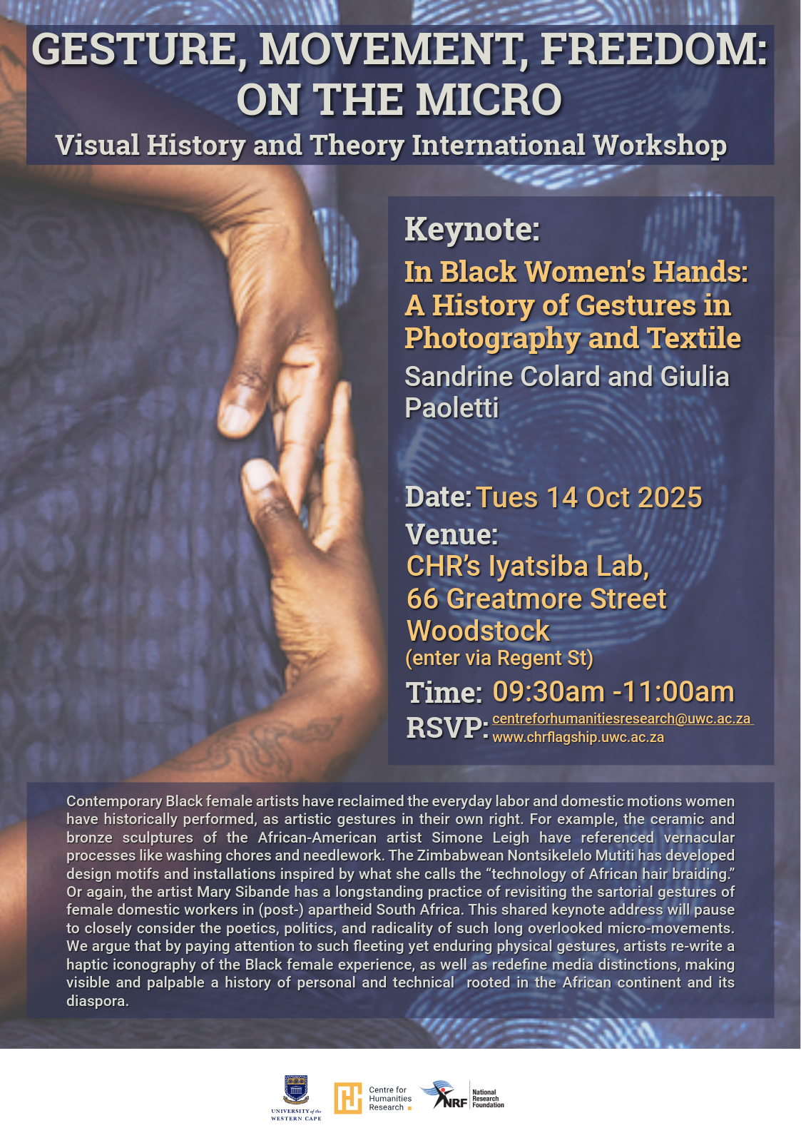 This shared keynote address will pause to closely consider the poetics, politics, and radicality of such long overlooked micro-movements. We argue that by paying attention to such fleeting yet enduring physical gestures, artists re-write a haptic iconography of the Black female experience, as well as redefine media distinctions, making visible and palpable a history of personal and technical rooted in the African continent and its diaspora.