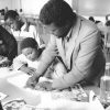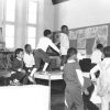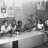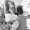 Most of the images in the CAP Photo Collection were taken in the 1980s and ‘90s, when CAP was located in Chapel Street, District Six. There are, however a few from the late 1970s, taken before the organisation moved from its premises in Mowbray to its new home in District Six. Collectively, the photos highlight the organisation at work, showcasing some of the activity at CAP, such as children’s art workshops, and drawing, guitar and printmaking classes. The photos also feature artists in their studios and some of the organisation’s mentors, such as Lionel Davis, Mario Sickle, Andrew Steyn and Cecil Skotnes, all of whom contributed to making CAP a prominent cultural hub and place of fertile creativity during the apartheid era. What generally emerges from looking at the photos is a picture of the spirit and ethos of CAP, its creed of non-racialism, and its quest to foster education in the arts during an era in which opportunities for training in the arts were severely restricted by apartheid dictates.