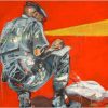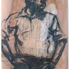 A former artist-in-residence at Greatmore studios in Woodstock, Cape Town, Dathini Mzayiya was born in Queenstown in the Eastern Cape province of South Africa in 1979. After studying advertising and marketing at the Advertising College of South Africa, Cape Town, in 1999, he enrolled at the Peninsula Technikon (Pentech), Bellville, Cape Town, in 2000, where studied graphic design and advertising. He then registered for the Advanced Programme in Visual Arts at the Community Arts Project (CAP), Cape Town, in 2001. At CAP, he was taught drawing and painting by Joseph Gaylard and Sarah Schneckloth. Since then, he has shown his work, not only in South Africa, but in various parts of the world, notably Germany, Austria, Switzerland and Ethiopia. He has also participated in international projects, including a project for the South African Human Rights Media Centre in Liberia and Kenya, where he worked with survivors of torture and war. Using oil paint and charcoal, Mzayiya’s critical art depicts the socio-political landscape of the postapartheid, with particular focuses on racialised structural violence and the plight of the poor and downtrodden. His expressive paintings and drawings generally reflect disillusionment with a contemporary South Africa described by some as the ‘rainbow nation’, and his subjects range from bosses, landlords, the police and security guards to the homeless, beggars and job seekers. Mzayiya is a founding member of Western Cape branch of the Visual Arts Network of South Africa (VANSA); Africa South Arts Initiative (ASAI); CitySkin, a public space design firm; and Gugulective, an arts, culture and open education collective intent on making “the history and legacy of apartheid visible again and to combat it with artistic methods.”