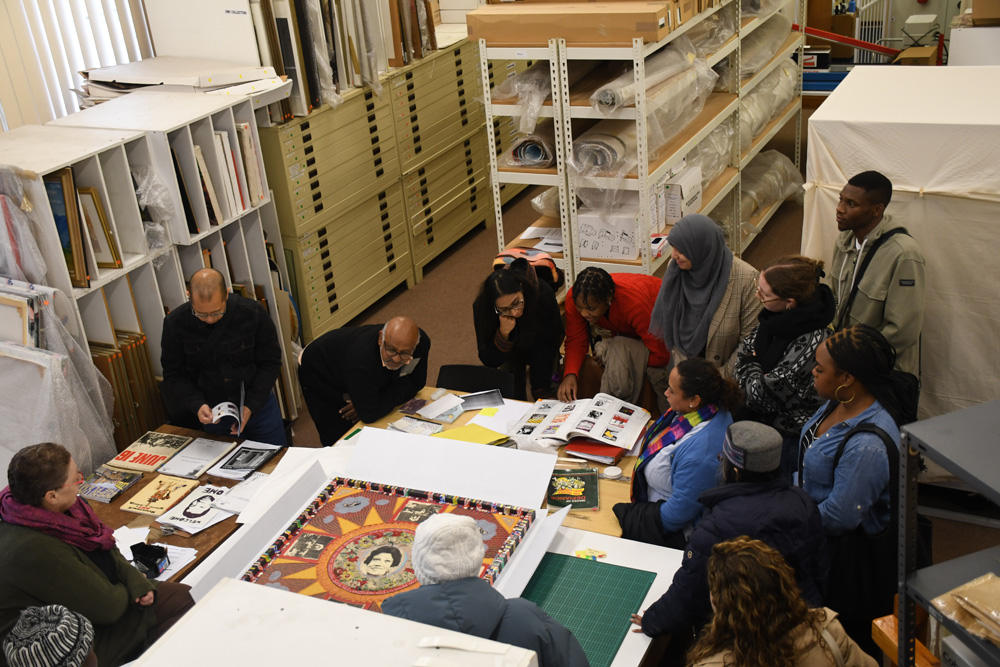 Similarly, but pointed to visual and tactile materiality, Winter School participants had an opportunity to engage the work of Buhle Ngada, a former CHR Artist in Residence. From Ngada’s reworked Mayibuye Archives’, she fabricated posters and placards and turned the archive into a space of play. In her work, Ngada draws attention to the connection between today’s women’s and youth struggles and those to be found as part of the liberation movement under Apartheid. As a final activity, participants entered Mayibuye’s AV digitisation room, the photographic collection, and historical papers.